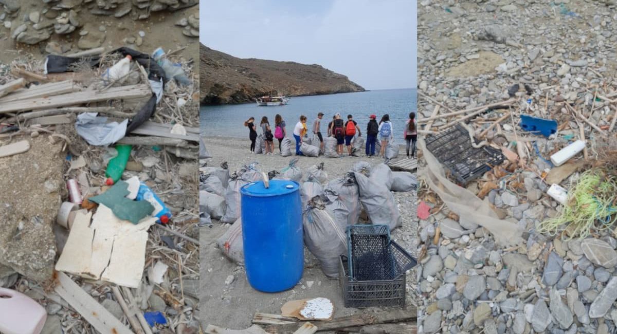 Την άνοιξη, μετά τις φουρτούνες του χειμώνα, συσσωρεύονται τόνοι σκουπιδιών στις βορεινές παραλίες του νησιού, που είναι προσβάσιμες μόνο από τη θάλασσα (Άγιοι Σαράντα, Κοιλό Νερό, Ναυάγιο Κάτω Μεριάς, Τυροκόμος, Μακρί, Μεγάλη και Μικρή Βλυχάδα κ.λπ.). Με την έναρξη των μελτεμιών το καλοκαίρι, η θάλασσα παίρνει πίσω τα σκουπίδια από τις ακτές, δημιουργώντας τεράστιο πρόβλημα στο οικοσύστημα την αναπαραγωγή των ψαριών.